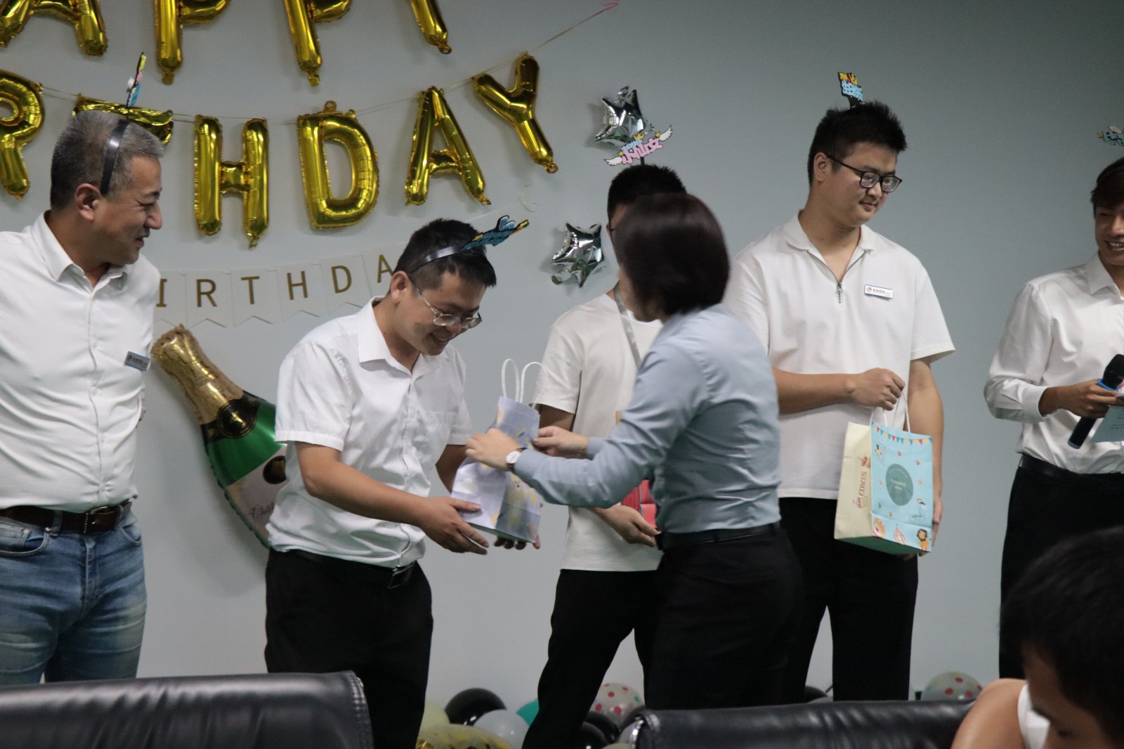 珩祥科技综合管理部为每位生日员工准备了不一样的生日礼物,副总裁汪修含把这份心意分发。
